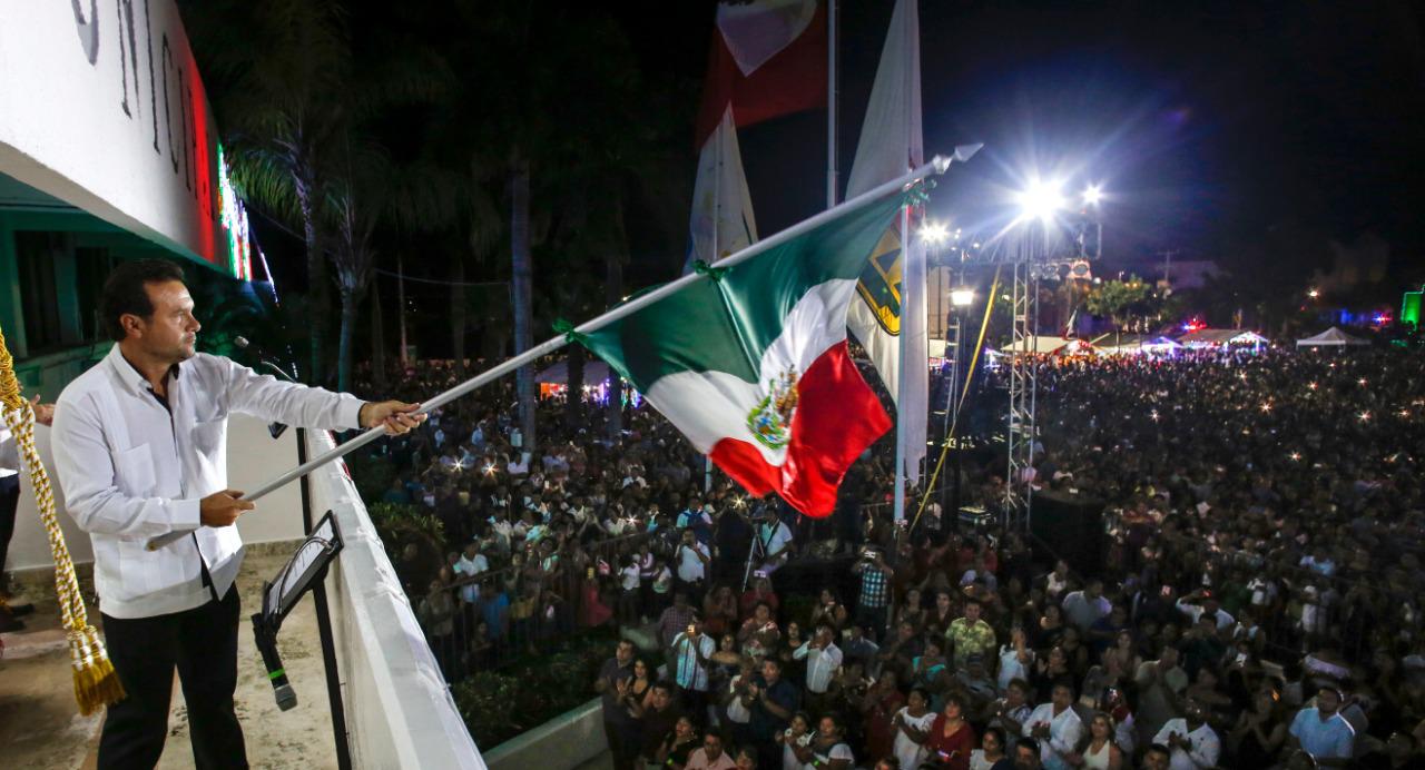 Cozumel, Quintana Roo, a 15 de septiembre de 2019.- La visión de los héroes de la Patria y las acciones que realizaron para tener una nación libre, es inspiración para todos los cozumeleños y los diferentes órdenes de gobierno, que trabajamos con el firme compromiso de llevar a nuestro municipio mayor desarrollo social, destacó el Presidente Municipal, Pedro Joaquín Delbouis, luego de encabezar ante miles de personas, reunidas en el Parque Quintana Roo, la primera ceremonia del Grito de Independencia de la actual administración.