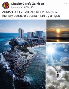 En su cuenta de Facebook , el ex alcalde Juan Ignacio García Zalvidea , lamentó la muerte de Adrián López Farfán y envío su pésame.