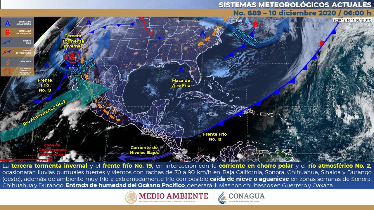 En tanto, el tiempo probable para las próximas 24 horas en Solidaridad es ambiente cálido diurno y fresco a frío por la noche y amanecer, cielo despejado a medio nublado sin lluvias, con vientos moderados del norte de 10 a 15 kilómetros por hora con rachas de 30.