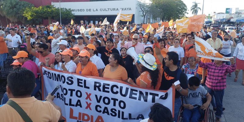 Más de tres mil personas marcharon en la ciudad de Chetumal a favor de Lidia Rojas Fabro ex candidata de Movimiento Ciudadano a la presidencia municipal de Othón P Blanco y en protesta por los resultados del Programa de Resultados Electorales Preliminares (PREP) que le da una mínima ventaja a Yensunni Martínez Hernández, ex candidata de la coalición Sigamos Haciendo Historia en Quintana Roo.