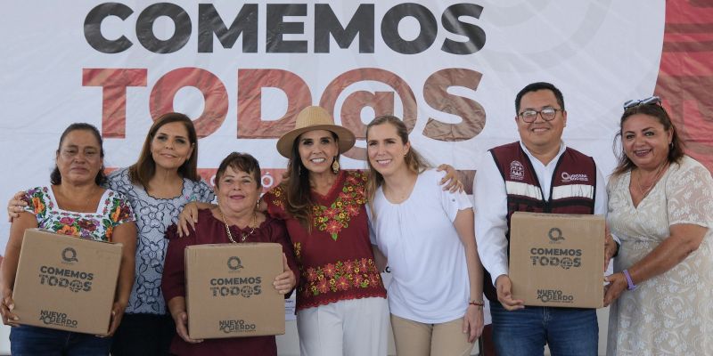 Acompañada de la presidenta honoraria del DIF Quintana Roo, Verónica Lezama Espinosa, y de la presidenta municipal Atenea Gómez Ricalde, la gobernadora Mara Lezama entregó paquetes alimentarios del programa “Comemos Tod@s” a 120 beneficiarias y beneficiarios en el municipio de Isla Mujeres.