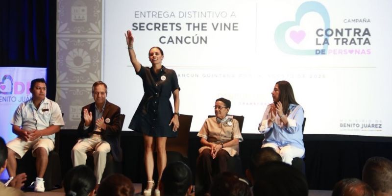 En ese sentido, la directora del Sistema para el Desarrollo Integral de la Familia (DIF) Benito Juárez, Marisol Sendo Rodríguez, detalló que el personal de Secrets The Vine recibió formación especializada en prevención de la trata de personas los días 18 y 19 de junio, alcanzando el requisito de más del 85% de colaboradores capacitados para obtener el distintivo. Con esta entrega, suman cinco reconocimientos otorgados desde octubre de 2024, alcanzando a más de dos mil 200 personas capacitadas en el municipio.