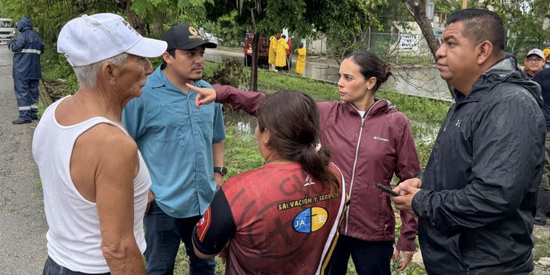 La Primera Autoridad Municipal, acompañada del secretario general del Ayuntamiento de Benito Juárez, Pablo Gutiérrez Fernández y del director general de Servicios Públicos, Antonio de la Torre Chambé, saludaron a las y los vecinos presentes, a quienes comentó que 250 trabajadores se encuentran limpiando y realizando trabajos para evitar los encharcamientos en diferentes puntos de la ciudad.