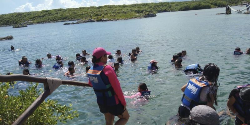 El grupo estuvo compuesto por 57 niñas y niños, así como 4 docentes acompañantes. Durante el recorrido, las y los estudiantes tuvieron la oportunidad de aprender sobre la caleta, una entrada natural del mar hacia la tierra, y sobre la piedra caliza, característica de la región. También conocieron el significado del nombre “Xel-Há”, que en lengua maya se traduce como “orilla del agua”.