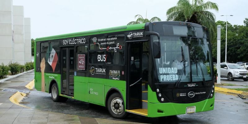 La gobernadora Mara Lezama Espinosa presentó el camión Taruk, el camión 100% eléctrico y fabricado en México, que estará en pruebas operativas como parte del proyecto del servicio de transporte público en Chetumal, la capital del estado.