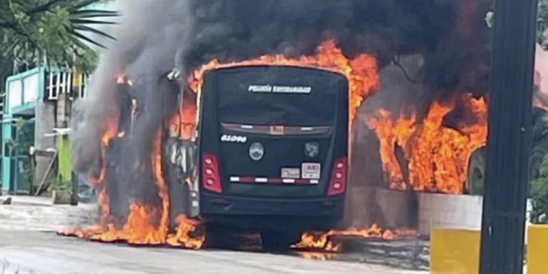Durante la intervención, un grupo de líderes vinculados a invasiones ilegales agredieron al personal policial con piedras, palos, machetes e incluso una bomba molotov, lo que provocó el incendio total de un camión de la Policía Municipal.