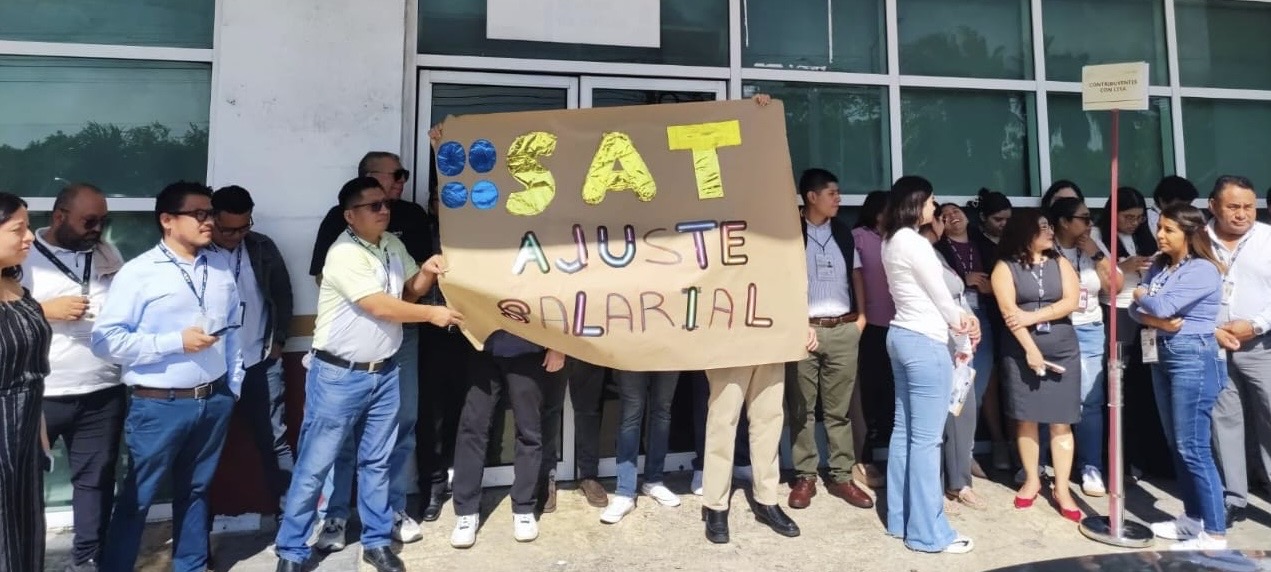Empleados del Servicio de Administración Tributaria (SAT) en Cancún comenzaron este miércoles un paro de brazos caídos a partir de las 9:00 de la mañana y por tiempo indefinido, en adhesión a un movimiento nacional, exigiendo un ajuste salarial inmediato y mejores condiciones laborales. Inicialmente planeado para el martes, decidieron laborar ese día con la esperanza de que sus demandas fueran atendidas por autoridades federales a nivel nacional, pero al no recibir respuesta, optaron por detener actividades indefinidamente.