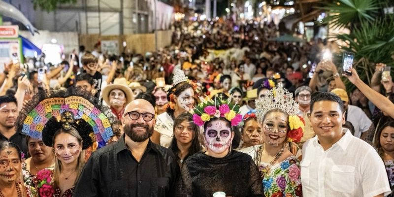 Miles de habitantes de Playa del Carmen y turistas disfrutaron de este colorido evento, que inició en la avenida Constituyentes y concluyó en la Plaza 28 de Julio y en el que estuvieron presentes elegantes catrinas y catrines.