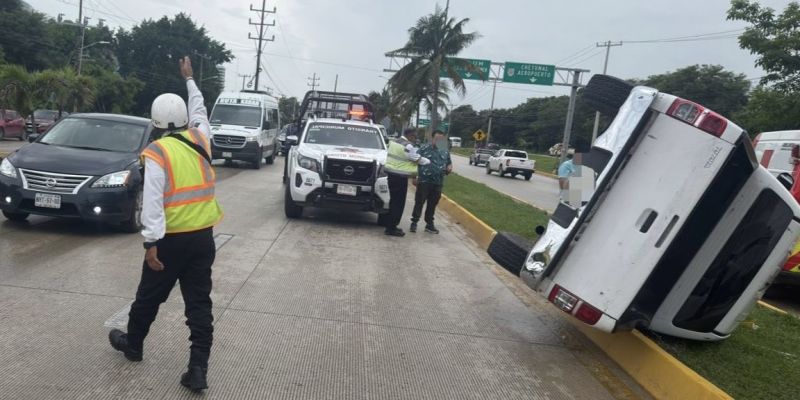 Una camioneta protagonizó la tarde de este lunes una aparatosa volcadura sobre el Bulevar Luis Donaldo Colosio, a la altura del Hotel One.