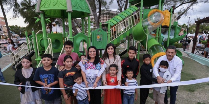 “También se instalaron juegos en el Parque Central de la colonia Zetina Gasca y en Villas La Playa, donde estamos estrenando columpios, giratorios, pasamanos y estructuras muy completas, integrales, pero sobre todo bonitas y seguras, para la sana diversión”, manifestó Blanca Merari.