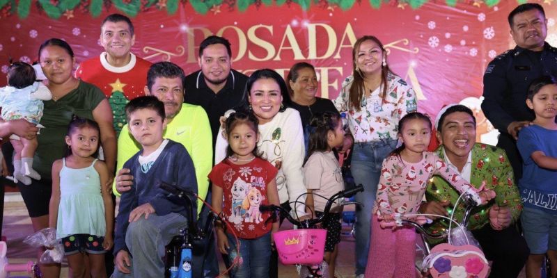 La presidenta municipal Blanca Merari Tziu Muñoz encabezó esta noche la Posada Navideña Leona Vicario 2025, organizada por el Ayuntamiento de Puerto Morelos, en la que más de 800 niñas y niños de esta delegación vivieron una jornada llena de alegría, acompañados por cerca de mil 200 adolescentes, madres y padres de familia.