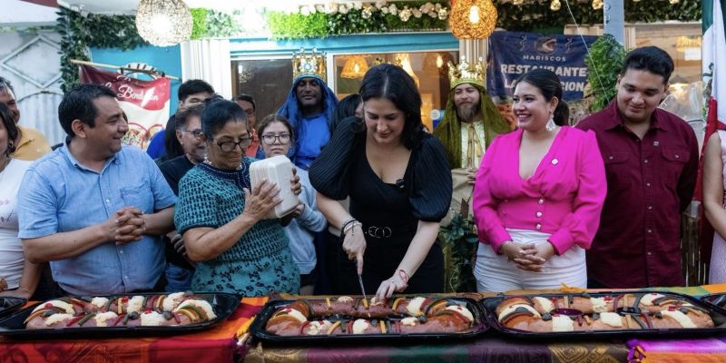 La presidenta municipal Estefanía Mercado encabezó la celebración del Día de Reyes con el tradicional corte de una rosca monumental de 2.5 kilómetros y entrega de juguetes a niñas y niños, reafirmando su compromiso con la identidad cultural, la convivencia familiar y el desarrollo integral del municipio.