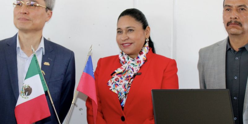Rivera asistió a la entrega de computadoras en el CBTIS 303 del municipio de Xiloxoxtla, en Tlaxcala, por parte de la embajada de Taiwán en México.