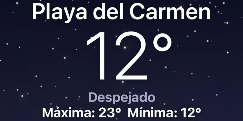 En Playa del Carmen, el termómetro descendió hasta 12 grados, con cielo mayormente despejado durante las primeras horas del día, lo que favoreció una sensación de frío más marcada para habitantes que salieron temprano a trabajar o realizar actividades escolares.