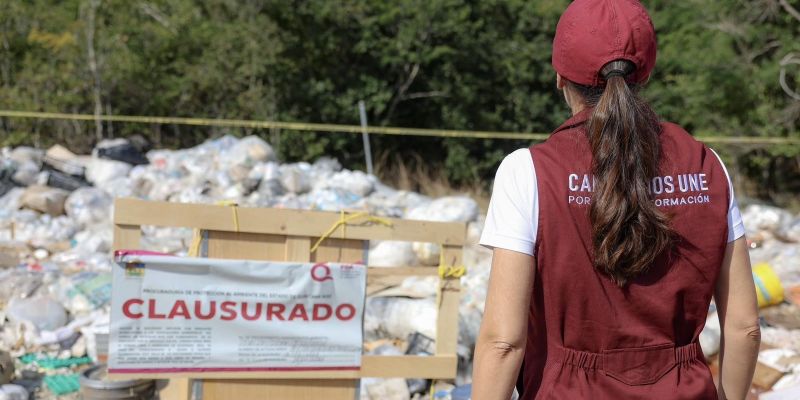 La Presidenta Municipal, Ana Paty Peralta, encabezó la clausura inmediata de un basurero clandestino detectado a un costado del Aeropuerto Internacional de Cancún, y reiteró que su administración mantiene una política de cero tolerancia y cero impunidad contra quienes incurran en delitos ambientales.