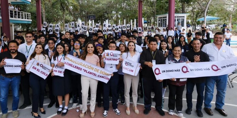 Al entregar un nuevo domo en el Colegio de Bachilleres “Plantel Cancún Cuatro”, la gobernadora Mara Lezama Espinosa expresó que las juventudes de Quintana Roo tienen el derecho de contar con una educación de calidad y este gobierno humanista con corazón feminista está comprometido a garantizarla.