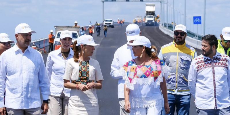 La presidenta Claudia Sheinbaum Pardo y la gobernadora Mara Lezama Espinosa realizaron una visita de supervisión al puente Nichupté, donde constataron los avances finales de esta obra estratégica para la movilidad en la zona hotelera.