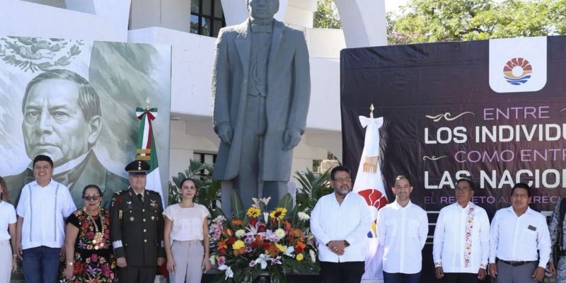 Al frente de decenas de representantes oaxaqueños, tierra donde nació dicha figura, la Primera Autoridad Municipal recordó la frase célebre del prócer de la Patria: “Entre los individuos, como entre las naciones, el respeto al derecho ajeno es la paz”, destacando que este principio recuerda que México es y seguirá siendo una nación libre, soberana e independiente, un pueblo que ha sabido defender su dignidad y su autodeterminación.