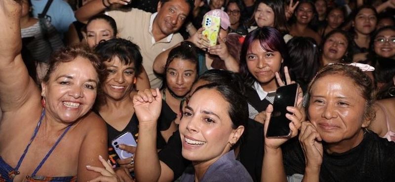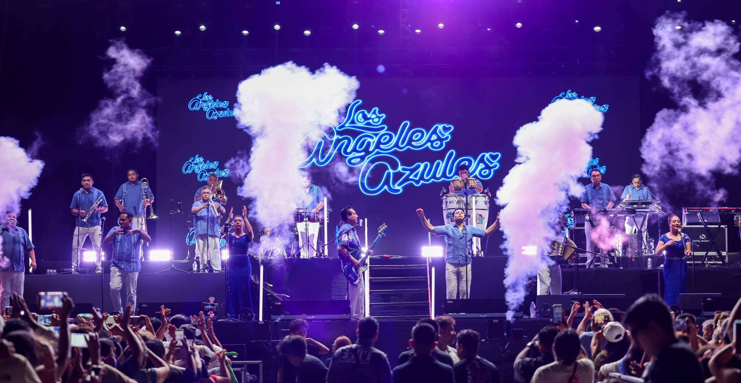 “Los Ángeles Azules ya llegaron a Cancún y estamos felices de tenerlos en este 56 aniversario de nuestra ciudad. Estamos listos para celebrar en grande a Cancún, esta hermosa ciudad que nos une a todas y todos”, expresó desde el escenario.